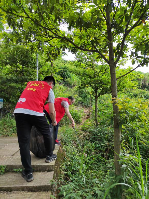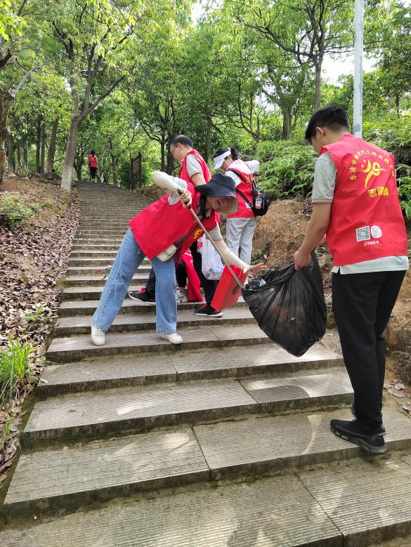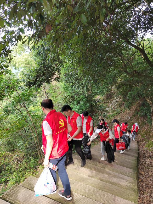 志愿服務(wù)我先行”的撿垃圾環(huán)保公益活動。我們身穿志愿紅馬甲從公司出發(fā),在白龍山腳下集合: